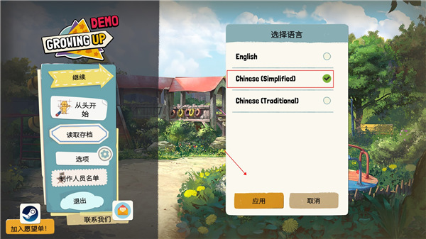 4、目前游戏支持简体中文、繁体中文、英文三种语言,选择简体中文即可;