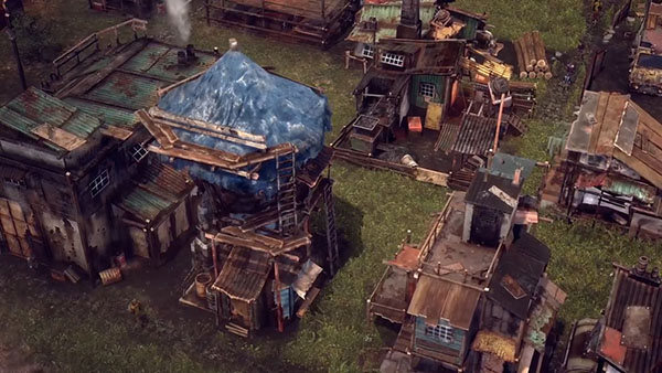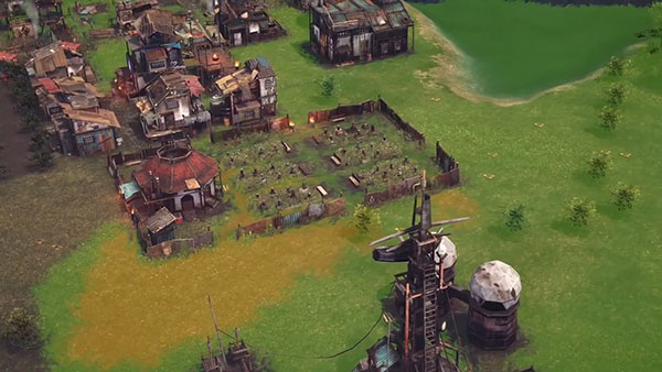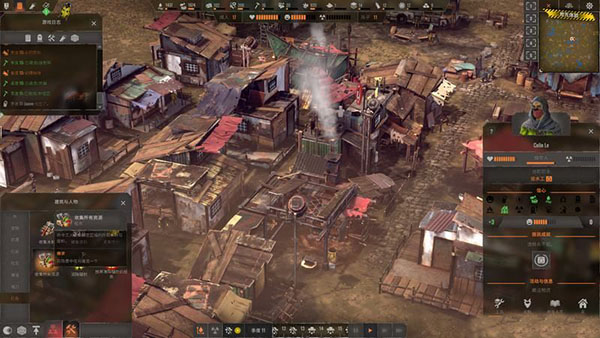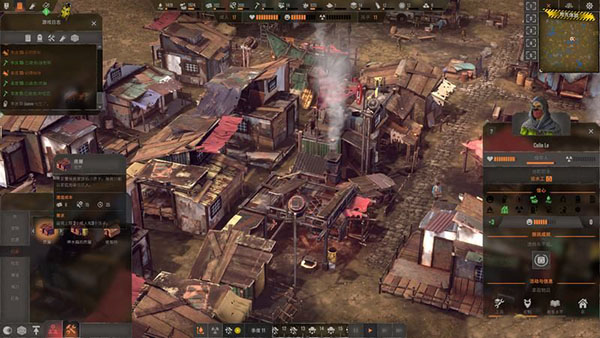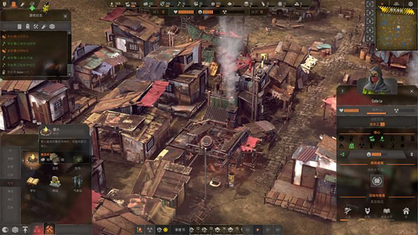 使用滚轮将画面缩放到最大的时候我们甚至还能看到穿着防护服的各个人物正在为了生存而心情劳作,房屋看起来并不算是美观 ,破木板构成的建筑有着一种难以言喻的感受,和背景相辅相成为玩家展现出了一个荒芜的末日世界。
