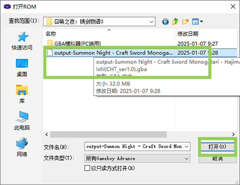 3、选择文件内的游戏gba文件打开。