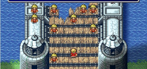 进入中间的房间后会看到贾兰及公主,前往对话后便会进入Boss战(基本上这场Boss战蛮容易一下的,只要血量满就能够击倒他了)打赢贾兰救回公主之后就会自动回到城堡,国王非常感谢勇者们,履行承诺把桥维修好。剧情完了之后跟公主对话将会获得琵琶琴。到城堡门口会有一段剧情………工匠们都很努力的在维修桥(国王下的命令,谁敢不从)